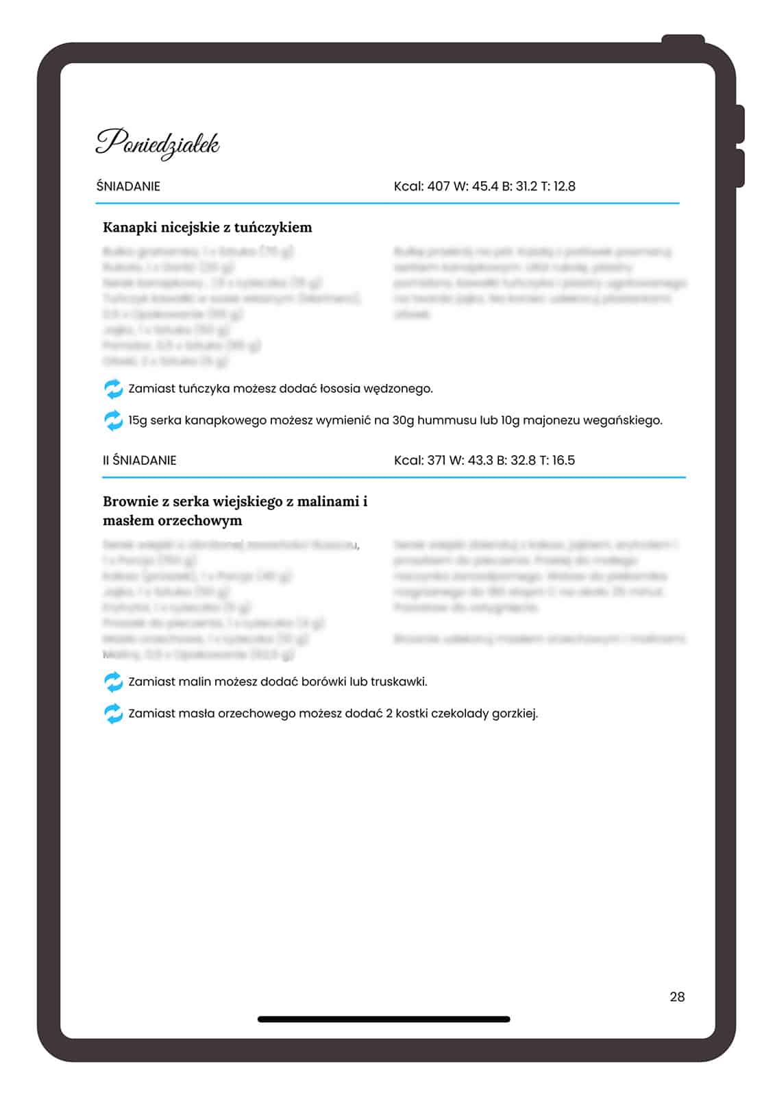 Jadłospis 7-dniowy w formacie PDF składający się z 4 posiłków dziennie (łącznie 28 przepisów)