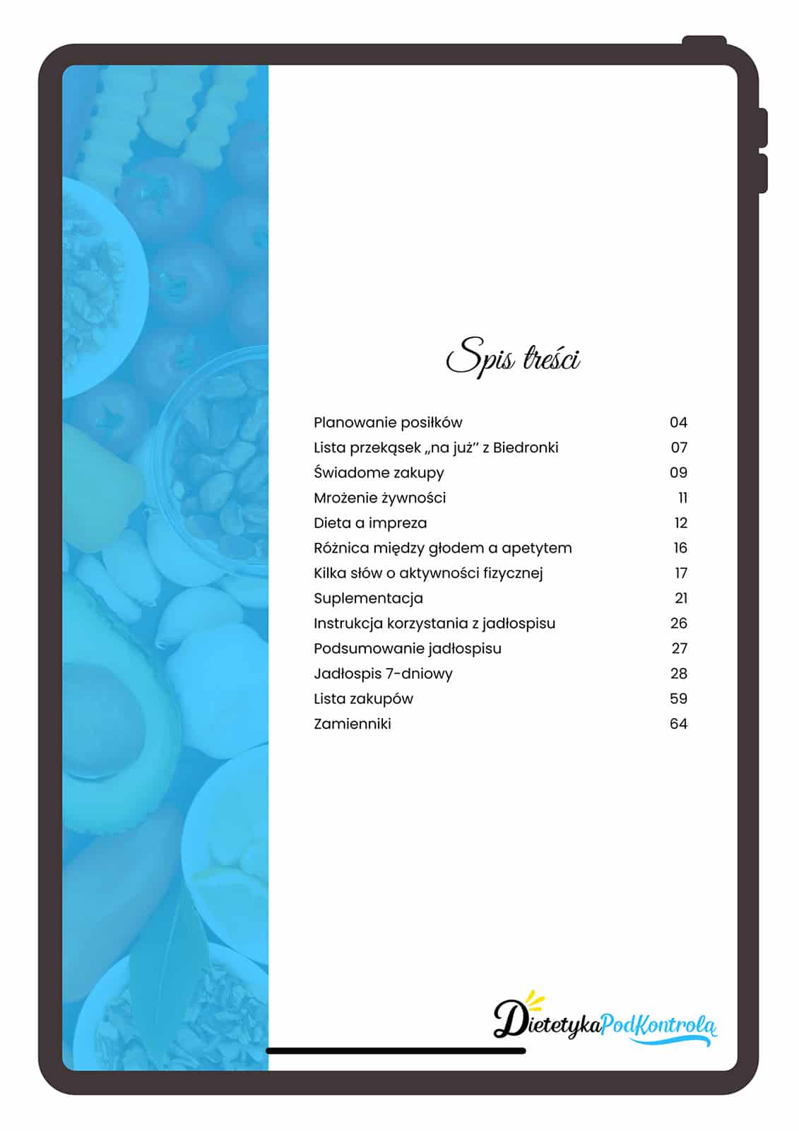 Dodatkowo 12 przykładowych przekąsek do spożycia ,,na szybko’’ z Biedronki z wyliczonymi makroskładnikami oraz 9 gratisowych przepisów do wykorzystania w swojej diecie - co daje w sumie 49 przepisów w całym e-booku